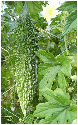 ¿©ÁÖÀÇ ÇиíÀº momordicaÀε¥ ¡°¹°¾ú´Ù¡±¶ó´Â ¶æÀÌ´Ù. Ç¥Çǰ¡ ¹°¾î¶â¾î ³õÀº °Íó·³ ¿ïÅüºÒÅüÇÏ°Ô »ý°Ü¼­ ºÙ¿©Áø À̸§ÀÌ´Ù. ¿­¸Å°¡ ȲÀû»öÀ¸·Î ÀÍÀº µÚ¿¡´Â ²®ÁúÀÌ ÅÍÁ® °¥¶óÁö¸é¼­ »¹°Ç ¿ÜÇÇ·Î ½ÎÀÎ »õ¾Ë¸¸ÇÑ Á¾ÀÚ°¡ µå·¯³ª´Âµ¥ ¸ÀÀÌ ¾ÆÁÖ ´ÞÄÞÇÏ´Ù.